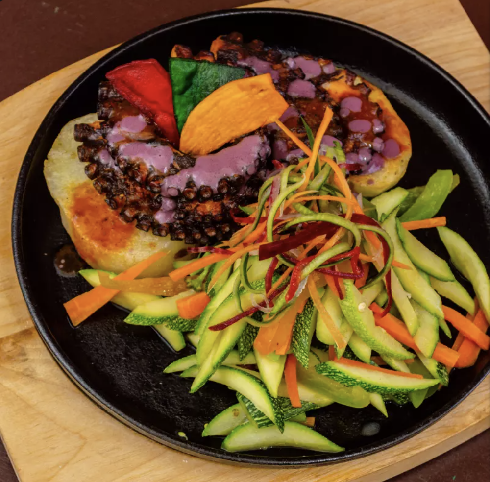 PULPO A LA PARRILLA CON VERDURAS SALTEADAS